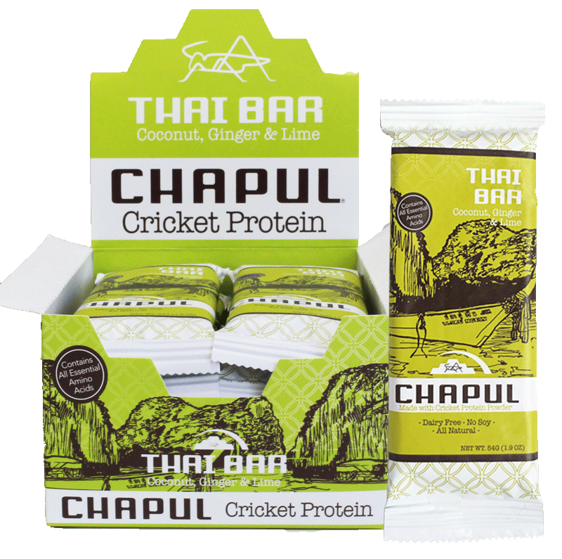Inspired by Thai jing leed recipes, Chapul's Thai Bar is a delicious mix of coconut, ginger, cricket flour, and a subtle twist of lime. Perfect for a summer day's adventure.